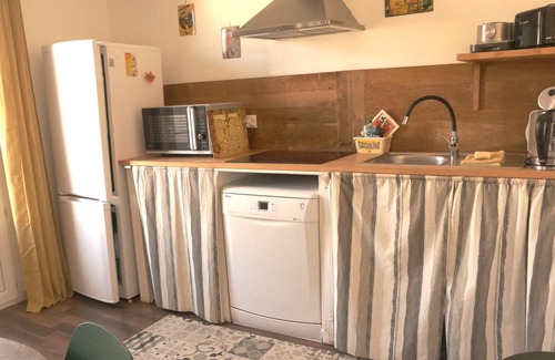 At your disposal, living room with sofa bed, separate bedroom, fitted kitchen (induction hob, microwave oven & grill, dishwasher, washing machine, fridge freezer, and everything you need for cooking. Bathroom and WC.
