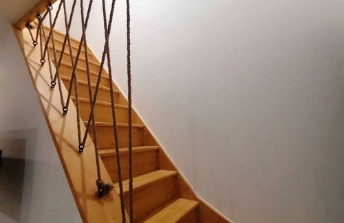 Upstairs, you will have two bedrooms at your disposal, a first with a 160X200 bed, a chair swing, a chest of drawers and a television, a second terracotta color with a 140X190 bed, a chest of drawers and a television.