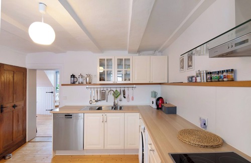 Located in the heart of the old town, the Omi Anni holiday flat in Schlitz is the ideal accommodation for a relaxing holiday. The half-timbered house from the Middle Ages is located directly on the market square, is one of the oldest in the town of Schlitz and is of urban planning relevance. The bright, light-flooded flat offers a friendly welcome to visitors, and on rainy days it impresses with its cosy atmosphere by the blazing stove and its many activities. The two-storey accommodation consists of a living room, a well-equipped kitchen, 3 bedrooms and 2 bathrooms as well as a guest WC and thus offers space for 7 people. Facilities also include high-speed WiFi with a dedicated workstation for working from home, a TV, washing machine, tumble dryer, children's books and toys. A high chair is also available.