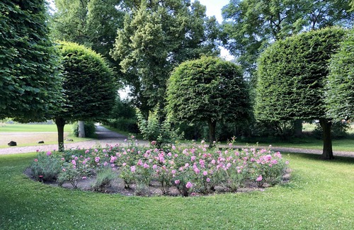 The apartment offers a view of the park, the historic belfry, the herb garden and the orchards with a stream in front. From the bedroom you have a view of the rose roundel.
