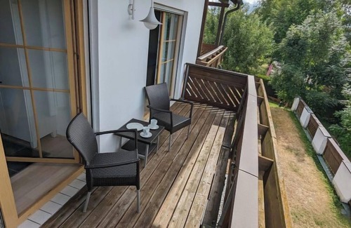 "ReMaWe", 2-room apartment 60 m2 on 1st floor. Object suitable for 2 adults + 3 children. Beautiful and cosy furnishings: living/sleeping room with 1 sofabed (140 cm, length 190 cm), dining nook and satellite TV (flat screen). Exit to the balcony. 1 room with 1 x 2 bunk beds, 1 double bed. Exit to the balcony. Kitchen (oven, dishwasher, 4 induction hot plates, toaster, kettle, electric coffee machine). Shower/WC. Heating. Balcony. Balcony furniture, box-room. Panoramic view of Geißkopf. Facilities: washing machine. Internet (WiFi, free). Garage (1 car). Please note: non-smokers only. Private entrance, smoke alarm.