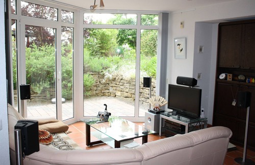 Sunny, fully equipped comfort apartment (living room with dining area and sofa bed, bedroom, kitchen, bathroom with combined bath / shower, storage room) for up to 4 (possibly also 5 - then with air mattress or cot) people with a large private terrace, garden and barbecue facilities - very quiet with lots of nature and good air, but also numerous leisure activities nearby: located in the heart of Thuringia. From here it is only approx. 17 km to Erfurt, approx. 30 km to Weimar and 20 to 40 km to the Thuringian Forest!