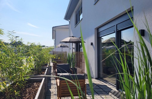 A modern architect-designed semi-detached house, newly built in 2025, with a large garden at one of Germany’s most beautiful lakes, Lake Goitzsche. Only a foot and cycle path separates you from the lakeshore. Whether you are vacationing alone, as a couple, with your family, or in a large group of up to 16 people – our newly built holiday home offers you all these possibilities! The property provides you with two large units (House 8a, House 8b) and two one-room apartments (Apartment 8a, Apartment 8b), which you can book individually or in combination. The village of Pouch is surrounded by the well-developed tourist area of Lake Goitzsche with clear water and the natural angler’s paradise Muldestausee. The Wörlitz Gardens, the Orangerie in Oranienbaum, and Ferropolis – the City of Iron – can be reached by car in just a few minutes. Other nearby destinations include Leipzig, Halle, Lutherstadt Wittenberg, and Dessau.