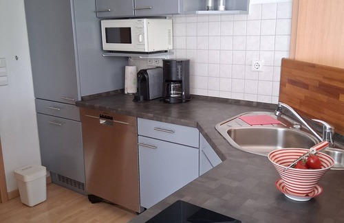 The 2-room apartment is located at the foot of the southern slope in a quiet location between the spa center and the old town on the 1st floor with separate access. The spa center is within easy walking distance. Living/dining room with radio and satellite TV. Kitchen with dishwasher, oven, coffee machine, kettle and microwave. Bedroom with double bed. Bathroom with shower, WC and hairdryer.