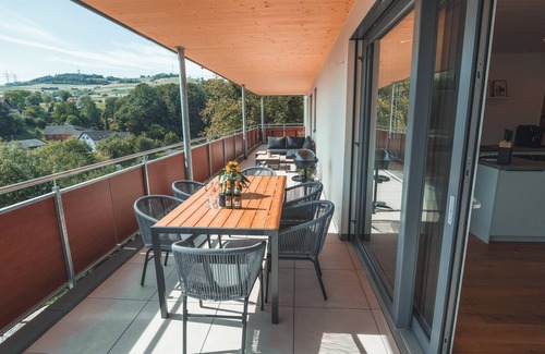 On the large balcony you will find enough space to relax and enjoy the unique view over Untermettingen and the Steinatal.