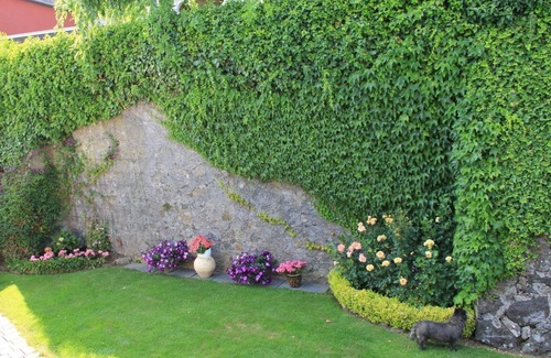 In the middle of Daun, centrally located and yet quiet. A very nice, comfortable 105 sqm apartment. 2 double bedrooms, one with TV. A romantic conservatory with beautiful views. A large living room (36 sqm) very nicely furnished with a view of the Liesertal and viaduct. Dinette with 6 chairs, large comfortable sofa. TV, CD player, radio, W-LAN and internet connection are available. The kitchen: ceramic hob, oven, microwave, dishwasher, fridge with separate freezer, toaster, kettle and much more. Bathroom with shower / toilet, sink, hair dryer and an additional guest toilet. The garden, a secluded place in the countryside, is not visible and limited by a high rampart, offers a lawn and a reserved seating area for you. In a closed garage, a car parking space can be rented. It also offers storage facilities for bicycles.
