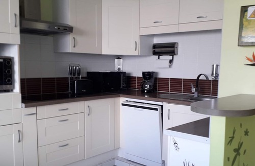 Stay with nice kitchen, 1chambre air-conditioned and a living room closed by a curtain with cliclac.