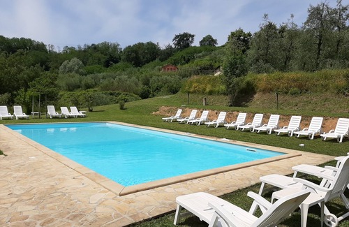 Tosca Apartment in Tenuta degli Obizzi in Montecarlo. The apartment is part of an estate of 8 apartments. Located on the first floor, it consists of 2 triple bedrooms, bathroom and kitchen. Complete with exclusive gazebo equipped with table, chairs and barbecue. Parking and use of the 2 swimming pools are shared use.