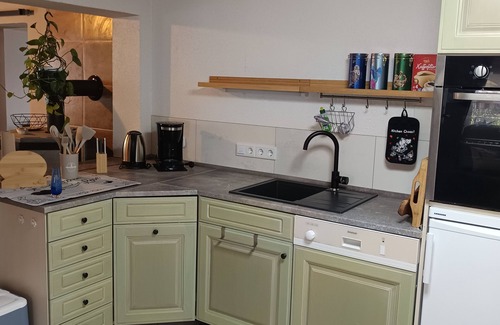 There is a historic market square with shopping facilities approx. 500 m away. The two supermarkets are approx. 2 km away. The fishing yard with a rustic snack bar and a cafe is only a 10-minute walk away. A bakery is 500 m away and below the castle there is a cozy beer garden. There are also several restaurants in the immediate vicinity.
