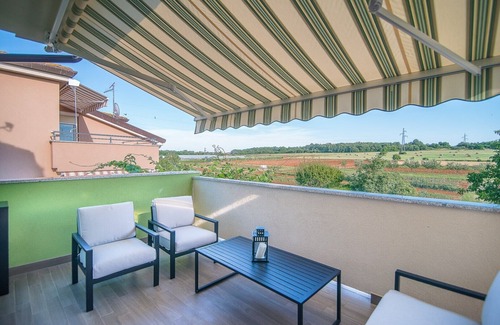 Modern and comfortable apartment on a quiet location for 4 persons. The apartment is located on the first floor of the family house and has a two covered balconies with a sitting set and a dining table. It consists of one bedroom, a bathroom with a shower and a spacious living area with a kitchen and an exit to the covered balcony. All rooms are air-conditioned. Included in the rental price are: bed linen, towels, wi-fi and parking. The great advantages of this apartment are its quiet location, the vicinity of the city center and that is pet friendly. The apartment has central heating so it's also available during colder days. Come to Poreč and spend an unforgettable vacation with your family. Near the apartment is a shopping centre and a McDonalds. Porec, as the capital of Croatian tourism by the number of nights offered by apartments, hotels, camps and various types of private accommodation, is located on the western coast of Istria. The extraordinary effort invested in the cleanliness and landscaping of the city itself, as well as the beautiful bays and beaches, in balance with the beautiful nature, pine forests and green macchia, and numerous islets, has brought Poreč numerous awards and recognitions.