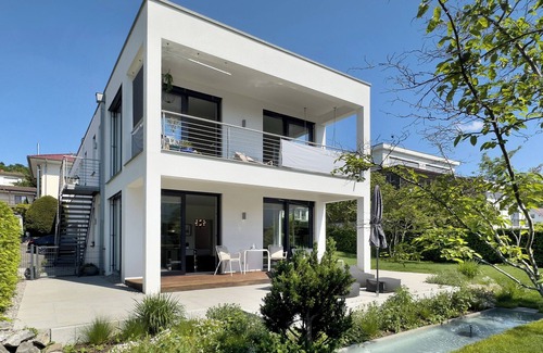 If you are looking for a special holiday flat in Unteruhldingen, directly on Lake Constance opposite the island of Mainau, then you have come to the right place! Just 80 metres from the lake, we offer two exclusive holiday flats in Unteruhldingen between Meersburg and Überlingen, opposite Constance and the flower island of Mainau. Modern Bauhaus architecture with ambience in the sunny village of Unteruhldingen on Lake Constance. Pure holidays and relaxation in southern Germany near the Alps. When the weather is fine, the mountains are close enough to touch and it is not for nothing that they say "Baden wine - spoilt by the sun". Lake Constance and the Lake Constance region have a lot to offer: the flower island of Mainau, the pile dwellings, the Birnau, the council city of Constance, the Zeppelin in Friedrichshafen, the "Nice of Lake Constance" Überlingen, the medieval castle in Meersburg, the margravial castle in Salem, the countless vineyards...and much more. Andreas and Marlies Denker wish you lots of fun