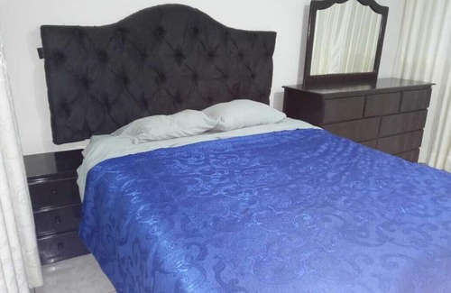 This apartment has two bedrooms, one of them has a queen bed, the other has 1 double bed and one single bed. The kitchen is complete with all what you need for cook, it has refrigerator, microwave, toaster, coffee marker, rise cooker, water boiler, stove and blender.