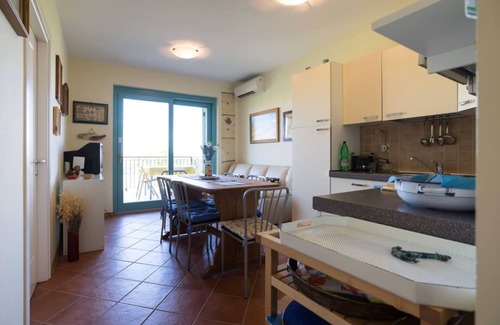 This beautiful and modern apartment is on the first floor and consists of two spacious bedrooms one with a double bed and the other with two single beds, full bathroom with shower unit, comfortable living room with double sofa bed and kitchen. A balcony where you can eat outside and enjoy the beautiful sunsets over the sea. Enjoy a wonderful stay. The apartment is fully equipped, air conditioning, heating, Tv Lcd 40" Samsung, washing machine, dish washer, refrigerator, stove, kitchen with all the utensils for cooking.
