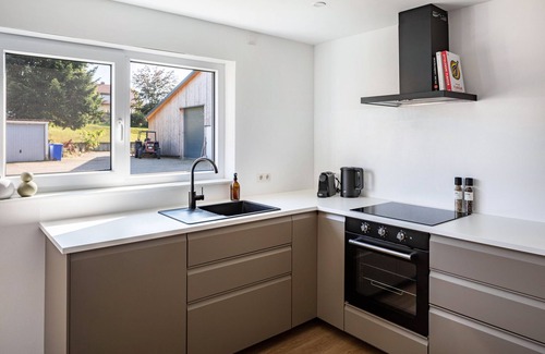 Our 84m² apartment offers a large bedroom (queen-size bed), a small bedroom (with pull-out bed), a fully equipped kitchen with dining room and a spacious living room (sofa bed) with a workplace. We can accommodate up to 5 people. There is also a 20m² partially covered terrace at your disposal. Here you can enjoy the view of the Black Forest and our fields. If you are lucky you can watch our cattle or chickens grazing. On request, we can provide a baby travel cot, a high chair and more. Entertainment is provided with games, puzzles and books.