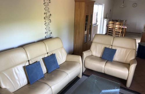 Ground floor apartment with separate entrance, dishwasher, microwave, coffee maker, satellite TV, radio, spacious rooms, south-facing terrace, barbecue, separate garden, bike rental, swimming pond, washer and dryer for a fee
