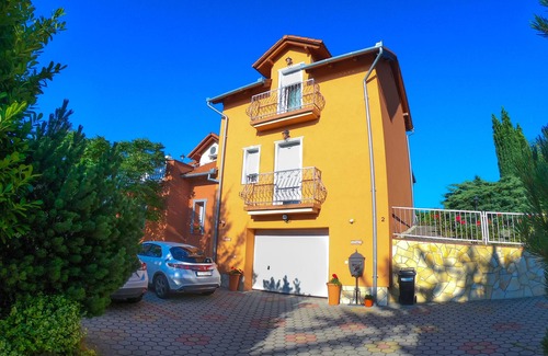 Two beautiful house with 5 apartments for 2 persons and also for 4 persons. Our apartments are located in a green settlement in the city of Zalakaros. We guarantee you the tranquility, the setting of a most beautiful Gebit in the city of Zalakaros. Our houses stand next to each other the Gehrute for Nordic walking. In our apartments is air conditioning and WIFI. In the price we give our bicycles to our dear guests daily to use. We speak German. The apartments are very comfortable, with natural wood furniture. The kitchen is very good and practically prepared Qualitet. In our wine cellar we make once a wine tasting for our dear guests. In 2015 we prepared a beautiful barbecue area with the extra kitchen. With us all television is LCD. Here are our "EXTRAS" for you: Once during your holiday with us, is an evening program with wine tasting in the wine cellar own white wine, barbecue party. On request, you will receive bicycles for the way to the bathing pleasure. We are animal lovers.