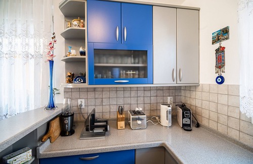 Two bedroom apartment is suited for 7 guests, as it offers two bedrooms with a king size bed, second bedroom with two single beds and a living room with a double sofa bed. The bathroom is private and offers a shower, toilet, hair dryer, bidet, towels, toilet paper and shampoos. The apartment also has an additional toilet. The kitchen is fully equipped with everything you need, like oven, stove, microwave, kitchen utensils, refrigerator, freezer, coffee maker, water kettle, toaster, ice machine, dishwasher, vine glasses, and so much more! Guests have a free parking space and a terrace.