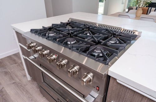 Apex Yosemite East is a 2022-brand new construction duplex home, with 2-bedroom, 1-bath, sleeps 6 comfortably, located inside Yosemite Park, in an area called Yosemite West. Enjoy modern luxury amenities including EV car charging station (The EV charger has Port J1772 connector so Teslas will likely need an adaptor), backup generator (ensures your vacation doesn’t get interrupted in the event of a power outage), Chef kitchen with commercial grade stainless steel appliances, marble showers, quartz counters, Italian teakwood cabinets, Brazilian hardwood, heated floors, Milgard windows, Rinnai tankless water heaters, Heat and Air Conditioning with mini splits, and spectacular views of the surrounding mountains & landscapes on one flat level, all while being centrally located to the Valley, Badger Pass/Glacier Point, and the Sequoia Grove. Flat parking for two cars side-by-side in all seasons! Prepare festive meals in the fully equipped and chef’s kitchen that includes a Forno six-burner stove, and then dine at the table that seats 4 or at the kitchen peninsula with stool seating for 2 additional guests. The house has a spacious deck for eating and relaxing outdoors, a Weber gas grill (Propane provided), and a gas fireplace in the open-space living room. View stunning sunsets and spend the evening relaxing in the front of the gas fireplace, taking in the stunning mountain views on your large private deck. It has the best parking in all of Yosemite West!