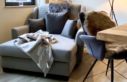 The large wing chair in the living-dining area invites you to relax on a hike through the nature of the Harz Mountains. Put your feet up, turn on the 65 "Smart TV and relax.