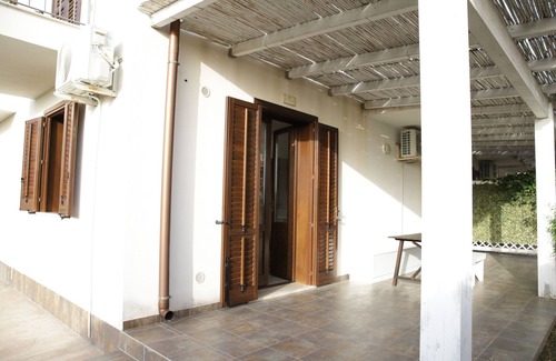 Appartamento con due camere da letto, ubicato al piano terra o al primo piano (in base alla disponibilità in caso di conferma), composto da: n° 1 camera da letto Matrimoniale + n° 1 camera da letto Matrimoniale o letti singoli (all'occorrenza vengono uniti), armadio, scrivania, bagno con doccia, WC, bidet, asciugacapelli, TV schermo piatto, cucina soggiorno, aria condizionata (cucina e camere), Wi-Fi. Appartamenti al piano terra dotati di veranda attrezzata con tavoli e sedute, Appartamenti al 1° piano dotati di solo balcone.