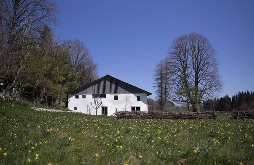 More information by the provider: No. 5 is an old farmhouse dating from 1690 with authentic charm and beautiful lighting. The vacation apartment has been tastefully renovated and is very comfortable, making it an ideal place to relax and recharge your batteries. It is the oldest house of the hamlet, set amid a serene and traffic free natural setting in Prédame, Chez Sémon, at the beginning of the Franches-Montagnes plateau. Located near an alley of centuries-old trees, it provides a perfect starting point for numerous walks and bike rides. The apartment has two master bedrooms and a dormitory-type room for 4 children (max. 8 persons), a large bathroom with bathtub, shower and toilet, as well as a separate toilet. Cots and high chairs are available. Tram "Gäbelbach" 40.3 km, bus stop "Le Prédame" 0.5 km, railway station "La Combe" 3.0 km, ferry 9.1 km.