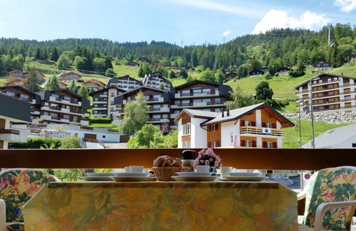 HighlightsThis sunny two-bedroom apartment in a central location overlooks the resort centre. The balcony is south-facing and is a great spot to observe village life and watch the skiers, hikers and telecabins going up the distant piste.