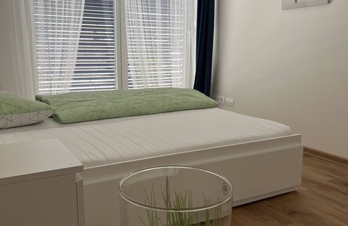 Appartment in a new building built in 2024, this unit is located 1.floor with view to Mikulov Castle. Appartment is fully air-conditioned, floor heating, free Wi-Fi, free parking. Fully equipped kitchen, modern bathroom, two rooms with quality mattresses. Gardens and terraces for steak grilling. Appartments are owned by well experienced professional in accomodation and tourism services, title holder of Young Hotelier of the Year 2001.