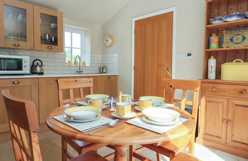 Apple Tree Cottage, a single-storey cottage, consists of a utility with washing machine, tumble dryer, and freezer, and an open-plan living space with electric oven and hob, microwave, dishwasher, kettle, toaster, dining seating for four people, and TV. The bedrooms consist of a double with en-suite shower room and double with en-suite bathroom. You'll find a shop in 4.3 miles and pub in 1.4 miles. WiFi, fuel, power, bed linen, and towels are included in the rent. Outside, there is an enclosed garden with lawn, patio, and furniture, and private driveway parking for three cars. Sorry, no pets and no smoking. However you decide to spend your days here in North Yorkshire, guarantee a memorable getaway with a stay at Apple Tree Cottage. Note: Good housekeeping bond applicable at this property. Please note this property has a check in day restriction of Monday/Friday