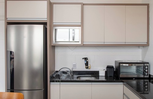 -Cozinha equipada com todos os utensílios e eletrodomésticos necessários para preparar e servir suas refeições no conforto do local.