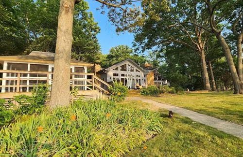 Aquia Creek Lodge is a waterfront experience 1 hour from Washington DC and minutes from Quantico Marine Base. Our one-level, with loft, 3600 sq.ft. cedar built home is designed for entertaining! Groups such as Graduations, Family Gatherings, Retirement Parties, Fishing and Duck Hunting groups all love the extremely private 4 acre fenced in lot, 400feet of waterfront, large pier, beach and boat ramp. Fishing boating, kayaking, beach play, water sports are all a part of daily life at ACL!