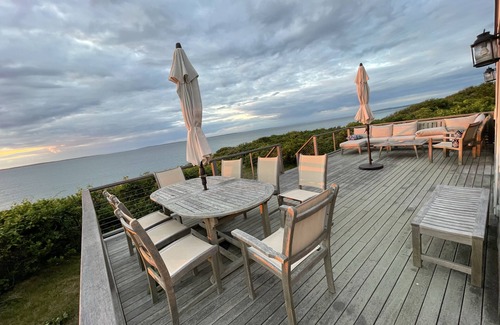 *NOTE* We Just opened the calendar for the month of August! These weeks will go quickly. This is a very rare opportunity so don’t wait to inquire. This exquisite and secluded waterfront property on 4.5 acres is minutes from the historic Gay Head cliffs and lighthouse and features a private path to a quiet beach. The house is spacious and modern, with 4 bedrooms opening onto large decks overlooking the water with a full view of the Elizabeth Islands, Vineyard Sound and spectacular sunsets, and a fifth bedroom with one full bed. You may decide to spend most of your time lounging on the comfortable outdoor furniture on the deck, drinking a glass of wine (or your preferred drink) and watching the sun set into the water.