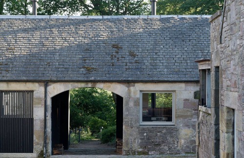 A modern, architect-designed conversion of an 18th Century farm building. The Cartshed has a huge window framing the heather hills and woodlands of the Pentland Hills Regional Park on the outskirts of Edinburgh.