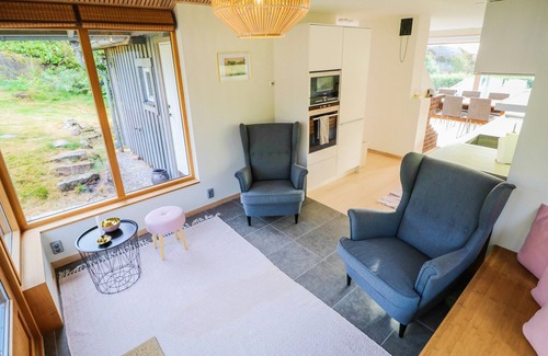 Welcome to this exclusive architect-designed villa located in the sought-after area of Mjörn on western Tjörn. Here you stay in a stylish and nature-close house with fantastic views of the western sea and a private pool overlooking the cliffs and ocean. A holiday home that truly offers something extra – perfect for both families and adult company.The villa is spacious and tastefully decorated with large windows, high ceilings, and an open floor plan that brings in the light and nature outside. It accommodates up to 6 people in three bedrooms – one with a double bed, one with two single beds, and a smaller one with a bunk bed. The kitchen is fully equipped with everything you need for enjoying holiday meals, and the dining area offers views of the terrace and the lush garden. The living room has a cozy sofa corner, a fireplace, and direct access to the terrace and pool area. The bathroom is fully tiled with shower, WC, and laundry facilities.On the generous terrace, there are seating areas, barbecue facilities, and views of the beautiful coastal landscape. The proximity to the sea makes it easy to take a dip from the child-friendly rocks or jump in from the diving board at the nearby beach, just a short walk away.Things to do in Mjörn and the surrounding area: Mjörn is a gem on Tjörn with close proximity to nature, the sea, and charming coastal villages. Enjoy world-class swimming opportunities – from salty cliffs to child-friendly beaches and small harbors. Take a sunset kayak tour or a day trip to the Nordic Watercolour Museum in Skärhamn, where you’ll also find cozy restaurants, shops, and cafés. If you love hiking, there are several beautiful trails in the area, and for longer excursions you can easily reach Orust or Stenungsund.Good to know about this accommodation:• A deposit of 3500 SEK is mandatory and must be paid on arrival day. The deposit will be refunded approximately one week after departure if the house is left in approved condition.• Bed linen and towels can be rented: 190 SEK/person and 60 SEK/person respectively.• Final cleaning is not included but can be booked for 2000 SEK.• Electricity is included in the rent, charging electric cars is not allowed.• No smoking allowed.• Pets are not allowed.• Youth groups are not accepted and parties are not permitted.