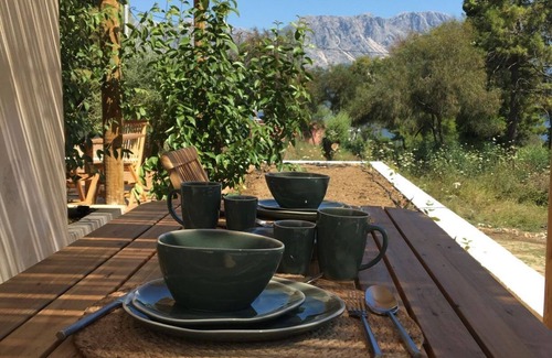 The studio has its own private decked patio with chairs and table and is sheltered by a bamboo pergola.