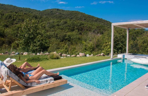 Aristotelia Gi Villas - Blissful Poolside Sanctuary has 2 Bedrooms , 2 Bathrooms, and max occupancy of 6 people. The minimum rental for this property is 1 nights, but this can change depending on the season you plan on staying. Previous guests have given good rated it, and VRBO labeled it a top-rated Villa because of the excellent services rendered by the owner or manager of this Villa, and has consistently provided great experiences for their guests. Most families or guests that use it recommend it to their friends and some of them are repeat guests. Villa has a friendly neighborhood, and the Olympiada has interesting places to visit. If you want to learn more about the Villa in Olympiada, such as places to visit and things to do nearby, you can check below to learn more.