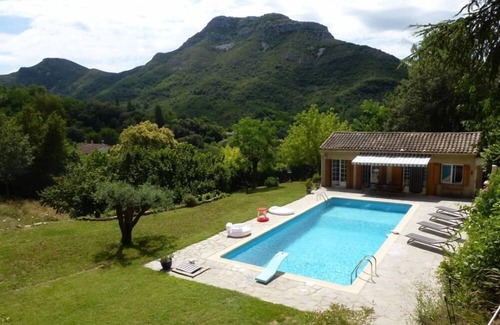 Around the pool and its superb view | House in Sumène