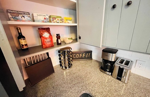 Tucked on a quiet neighborhood street and still minutes from everything. Near highway access, College Ave, and multiple grocery stores including Whole Foods. Fully furnished and artfully decorated! The theme is a “wonderland” as you will soon find out which will make for a more fun and funky space to relax while you enjoy everything Fayetteville has to offer. Three bedrooms (2 queens and a comfy full), multiple smart TVs, and fiber Wi-Fi. Also, the fenced backyard is plenty big with a covered patio with built-in gas start grill. Enjoy Cornhole and the in-ground fire pit. Fully stocked kitchen amenities for an at-home feel including coffee pot, toaster, and electric kettle. Don’t forget the tea! Large front porch spans the entire housefront for your morning or evening pleasure. Please enjoy our unique space!