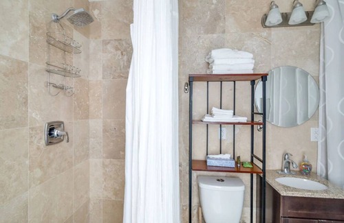 -Huge in-room tub and tankless water heater for endless hot water."