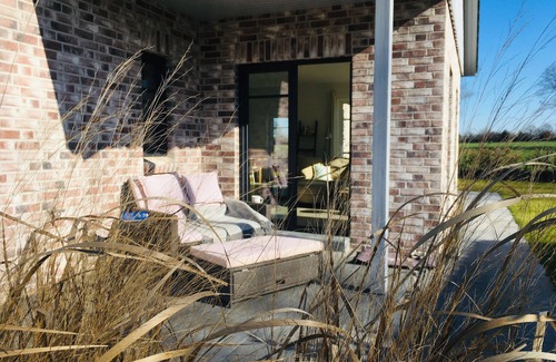 Parking and shed: Parking is possible under your own carport with covered access to the utility room and a shed holds a bike, a grill, a parasol and deckchairs. Enjoy the peace and the view over the fields and relax in your own garden!