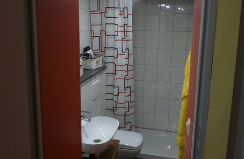 There you have a complete fitted kitchen with dishwasher, also a bathroom with shower.