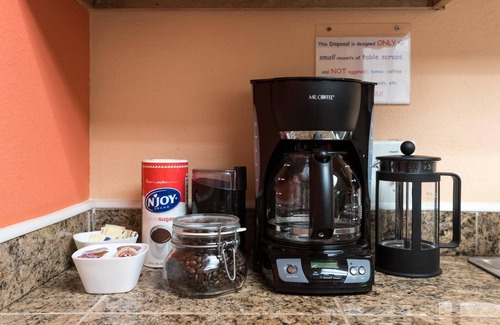 The kitchen is well furnished with everything you’d need to cook! We provide organic local coffee beans and grinder for you as well as bar soap, lotion, face wipes, shampoo, conditioner and body wash.