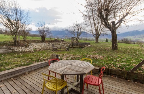Gite in the house adjoining that of the owner, on 2 levels including on the ground floor: a living room-kitchen lounge area, WC with hand basin. 1st floor: 2 bedrooms (1 double bed 160x200 cm / 1 double bed 140x190 cm, 1 single bed 90x190 cm, 1 wrought iron child's bed), a bathroom (shower, 2 sinks and WC), corner living room with television. Terrace and land. House located in the countryside, benefiting from a vast plot of land of 6000 m² with a pond. Wooden terrace with barbecue/plancha. Very spacious cottage for 4 people, with a through view in the living room and a second living room upstairs. Careful and personalized decoration, beautiful panoramic view of the countryside. Small grocery store with bakery and Fromagerie de St Ours 1.2 km away, shops in Cusy 5 km or Grésy sur Aix 8 km away. Possibility of storing bicycles in a closed room. Private parking for 2 cars.