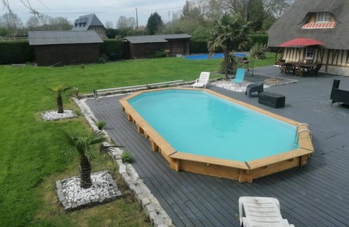 Au Petit Champignon Jolie Chaumière is located in Saint-Pierre-des-Ifs. Au Petit Champignon Jolie Chaumière provides accommodation, featuring Parking, Pool, Private Pool, among other amenities. This House features Parking, Pool, Private Pool, to make your stay a comfortable one.