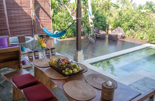You can relax and enjoy the view in the Balinese gazebo (Balebengong) or refresh yourself with a dip in the private cool pool. Our Ulin wooden sun deck, which encloses a beautiful old mango tree, is the ideal place for sunbathing or yoga. End your days with some of the best relaxation in the Balinese style hot tub while star gazing and listening to the sound of the ocean.