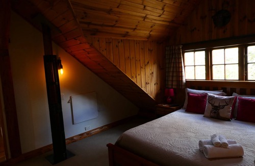 Two fantastic living areas – an open plan lounge complete with dining table and eight chairs, woodburner, 42" television with freeview, movies, and pool table opening onto large verandah with mountain views leading to outdoor five seater spa. The kitchen is well equipped with large walk in pantry, fridge/freezer, microwave , nespresso coffee machine, wall oven and sink with plenty of bench and cupboard space. Complimentary continental breakfast with homemade crumpets and raspberry jam. A separate breakfast room with table, bench seats, and under stair fireplace with sunny morning aspect is under the mezzanine ‘kids lounge’, perfect for their own space complete with bins of k'nex, duplo, lego, books and puzzles for those rainy days. With the mezzanine sleeping loft of 1 Queen, 1 Double bed, 2 single beds, 1 king single and lounge area, additional small balcony mezzanine with one single, and two separate bedrooms with one queen, one with ensuite, both with wall mounted 'smart' tvs for streaming netflix etc, there is plenty of room for your group. Dog sitting and walking services are available by arrangement. This is an amazing gated hillside property, beautifully landscaped with ornamental ponds and plenty of space and privacy; across the road from a lovely river walk. Plenty of room for dogs to roam. Dogs are restricted to hard floor areas downstairs. Charges for dogs are $20/dog per stay, $30 for two dogs. Check out at 10 am, and check in at 2pm. Log Lodge is only 10 minutes to Ohakune township, then 20 minutes up a forest road to Turoa ski field or 30 minutes around to Whakapapa ski field. A shuttle service, Ruapehu Connections, operates from Raetihi to Ohakune.