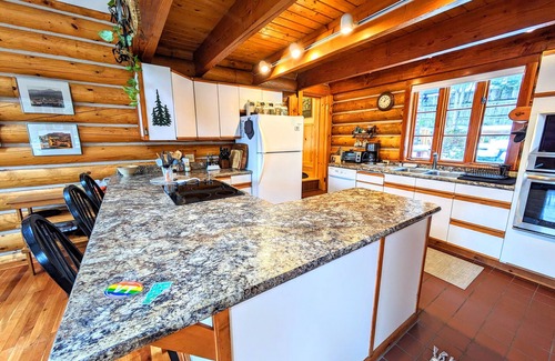 The Kismet Cabin resembles a duplex featuring a connecting room. Initially, it was a modest seasonal cabin constructed in the 60s. Later, in the 90s, a Log Home extension was added using locally harvested timber, connecting to the original structure. It presents two distinct ambiences: the airy and luminous log side, complete with a dining space and generous kitchen, and the snug, inviting cabin side (remodeled in 2015) that radiates tranquility and comfort.