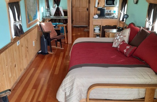 Vintage Railroad caboose with complete remodeled interior. Open floor plan from front to back. Sleeps two comfortably.