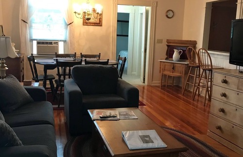 Condominium at Historic Hillcrest Inn in charming Ogunquit Maine. One bedroom, one bathroom with Murphy bed in living room. Equipped with full kitchen. Private deck with peek a boo views of the ocean. Tucked away from the road with free off street parking, shared patio with grill and recent updates to grounds and unit. Established in 1911 Hillcrest is one of Ogunquit's first hotels. The Inn is walking distance to shopping and dining in Perkins Cove and minutes from gorgeous Maine beaches by car. Enjoy early Fall in New England. Day trip to Portland in under an hour. Nearby hiking trails to enjoy New England foliage.