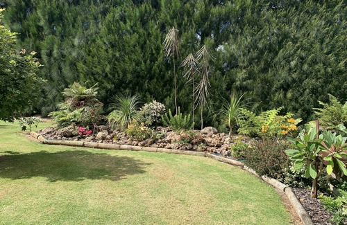 This sunny, warm cottage is situated in an avocado orchard a short drive from Whangarei city. It is surrounded by lush green fruit trees and native plantings, providing a quiet, relaxing environment away from the urban hustle. The self-contained cottage is modern and offers all the conveniences of a motel but with the added extras of peace and privacy. A large wooden deck runs the length of the cottage and overlooks a lawn and the orchard beyond. Kereru (wood pigeons) and tui regularly fly overhead from treetop to treetop and many other bird varieties can be seen among the trees. It's not uncommon to hear the call of the pukeko and to spot rabbits bouncing around the cottage.