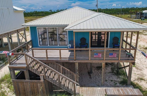 Looking for the perfect beach house for your next family vacation? Check out the adorable and affordable Salty Heir. This awesome 2 bedroom, 2 bath home is located directly gulf front around the 5 mile marker of Ft. Morgan. Enjoy the large partially covered deck that overlooks the beautiful Gulf of Mexico and your very own secluded beach. Breathtaking views from the living room/dining area/ and fully equipped kitchen, all located at south side of the house. The 2 spacious bedrooms are located on the north end of the house. Salty Heir offers a great vintage beach house feel, perfect for a family on a budget wanting to get away.
